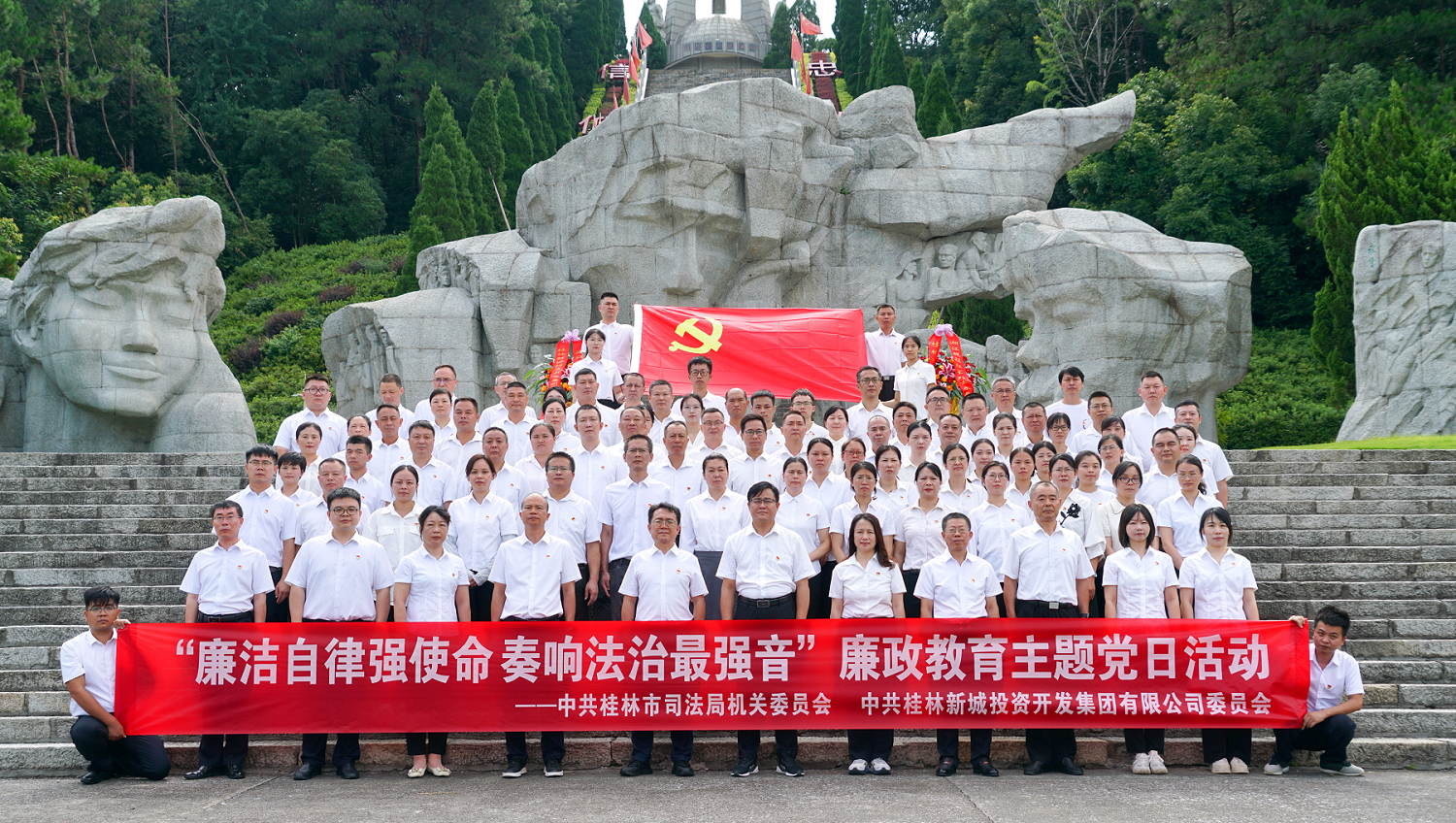活動當天,大家首先來到桂林興安縣湘江烈士紀念碑園,在莊嚴的紀念碑前整齊列隊,懷著崇敬的心情向烈士敬獻花籃,表達對革命先烈的深切緬懷和崇高敬意。在市司法局黨組書記、局長韓覓的帶領下,全體黨員高舉右手,重溫入黨誓詞,堅定為共產(chǎn)主義事業(yè)奮斗終身的信念與決心。