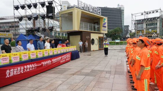 譚力源在講話中回顧了新城投集團(tuán)秀峰區(qū)環(huán)衛(wèi)項(xiàng)目的發(fā)展歷程。作為資產(chǎn)超300億元的綜合性國有企業(yè),集團(tuán)黨委始終堅持黨建與業(yè)務(wù)深度融合、雙向促進(jìn),以“黨旗映勝地”黨建品牌為引領(lǐng),在城市建設(shè)主戰(zhàn)場、城市運(yùn)營第一線等領(lǐng)域交出亮眼答卷。他指出,自承接秀峰區(qū)環(huán)衛(wèi)項(xiàng)目以來,項(xiàng)目452名職工以“繡花功夫”守護(hù)城市顏值,在三屆桂林馬拉松賽事和三屆“三月三”民族歌圩薈活動的環(huán)衛(wèi)保障、“6.19”特大洪澇災(zāi)害應(yīng)急清淤、漓江河“消劣返清”整治行動等重大任務(wù)中沖鋒在前、勇挑重?fù)?dān)。這些成績的背后,凝聚著每一位環(huán)衛(wèi)職工的心血與汗水,是“勞動最光榮”的生動注腳。