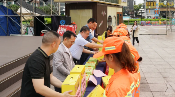 活動現(xiàn)場氣氛熱烈而溫馨,與會領(lǐng)導(dǎo)向環(huán)衛(wèi)工人代表逐一送上端午慰問品。一份份承載著節(jié)日祝福的慰問品,既是對環(huán)衛(wèi)職工辛勤付出的真誠肯定,更是對“城市美容師”的崇高禮贊。接過禮包的環(huán)衛(wèi)工人們紛紛表示,將以更加飽滿的熱情投入工作,把城市打掃得更干凈、更美麗!